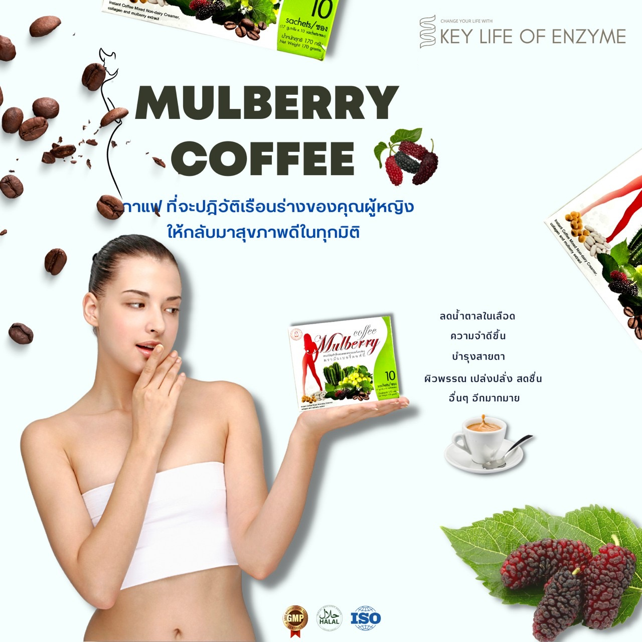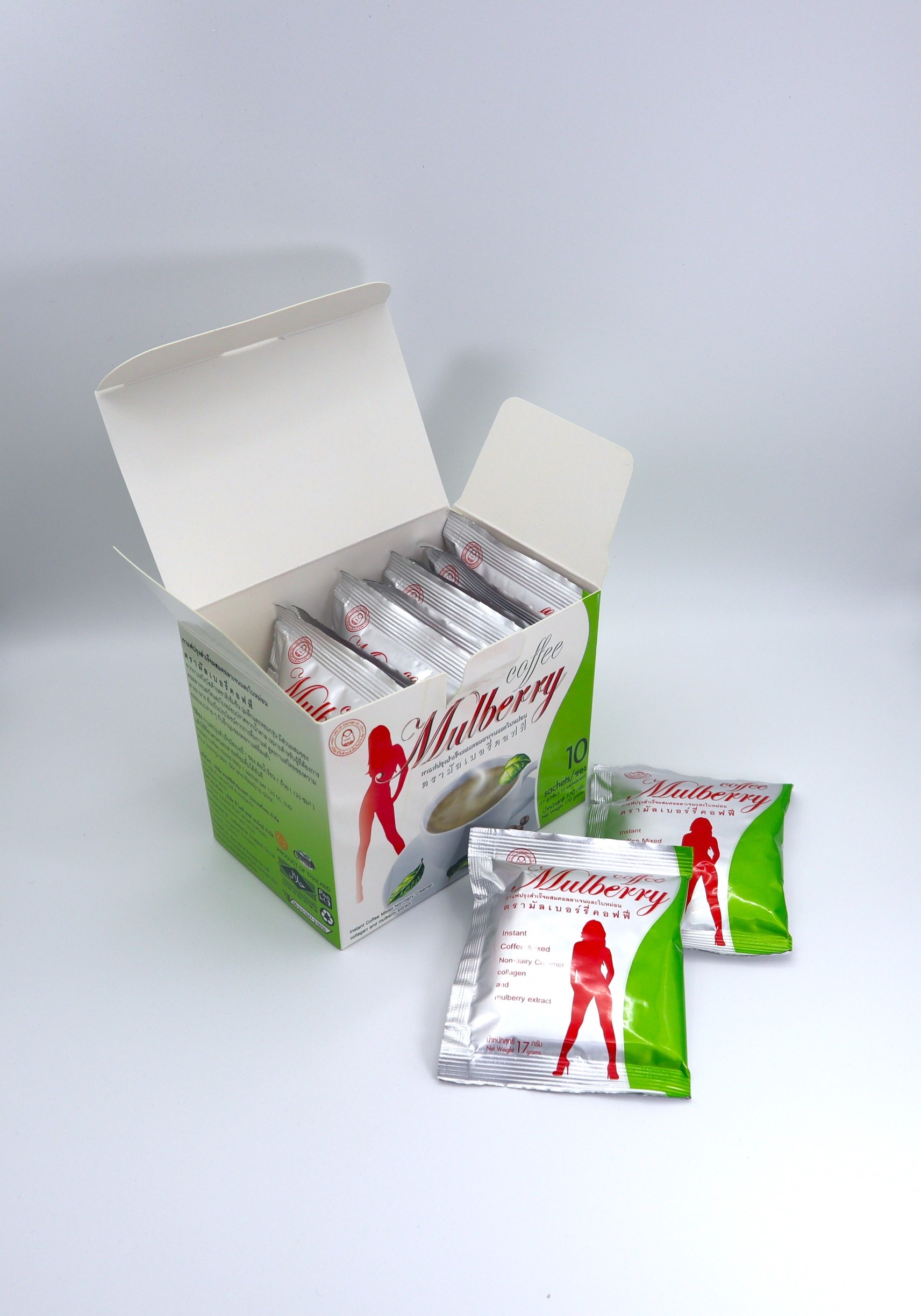 กาแฟมัลเบอร์รี่เป็นกาแฟไทยรสกลมกล่อมที่ผสมผสานประโยชน์จากสารสกัดเมล็ดองุ่น ถั่วขาว และกระบองเพชร ช่วยให้อิ่มนานอยู่ท้องได้ถึง 40-60% ด้วยเส้นใยคุณภาพสูงช่วยในการลดน้ำหนัก และมีส่วนช่วยในการต่อต้านอนุมูลอิสระสูงกว่าวิตามิน C 20 เท่า มากกว่าวิตามิน E 50 เท่าเร็วกว่า Super Antioxidant นอกจากนี้ยังช่วยในการเสริมสร้างคอลลาเจน และลดริ้วรอยอีกด้วย